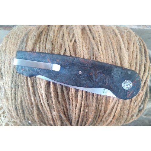 Острието е изработено от CPM MagnaCut, красивата поддръжка е изработена от FatCarbon Space Coral Copper, а системата за заключване с бутони се комбинира, за да предложи най-висока производителност и елегантност.