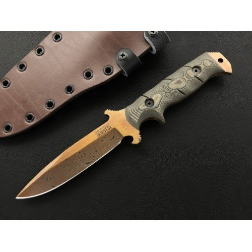 The powder-metallurgical CPM-3V tool steel is differentially hardened by Dawson so that the sheath achieves a very high hardness of 60-61 HRC, while the hardness of the back of the blade is only 40-45 HRC.