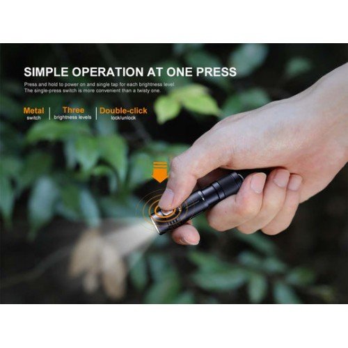 Фенерчето за ключодържатели Fenix E05R е чудесно фенерче за носене всеки ден. По-малко от 7.5 см и по-малко от 2.5 см диаметът, това фенерче тежи само 0,85 унции (24g), което го прави лек вариант за вашите ключове, джоб или портмоне. Четири нива на яркост са достъпни чрез натискане на страничния превключвател, а когато имате нужда от допълнителна мощност, задръжте превключвателя надолу за бърз изблик на много ярки 400 лумена. Вградената батерия може бързо да се зареди чрез отвиване на главата, за да се разкрие микро-USB порта за зареждане. Създаден за всяка ситуация, фенерчето Fenix E05R Keychain е изградено здраво, което го прави устойчив на удар, прахозащитен и водоустойчив. Доверете се на това мини фенерче за всекидневни нужди.