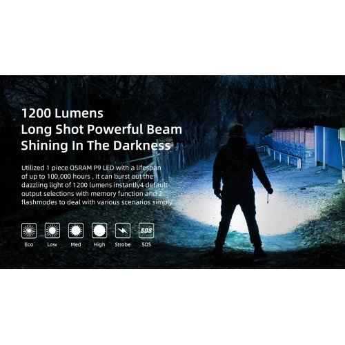 Bright Plus Long Throw: Осигурява максимум 1200 лумена на далечно разстояние от 587 фута, C3 ви предлага най-голямата опора на тъмно.