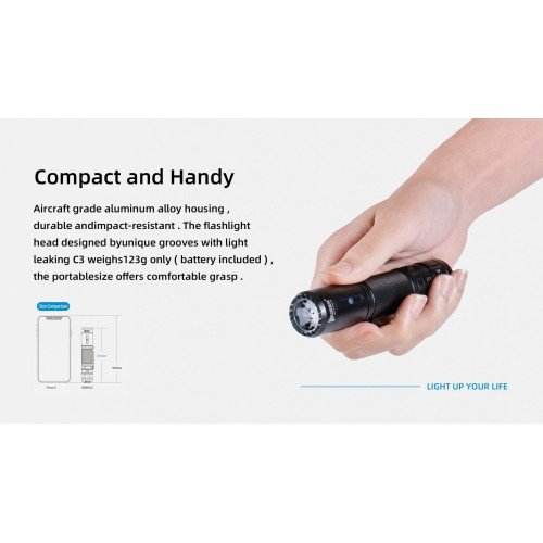 Лек и компактен: Малък и лек, с дължина, много по-къса от смартфон (4,78*1 инча) плюс тегло само 4,34 унции, C3 е лесен за джоб или чанта през рамо за ежедневна употреба.