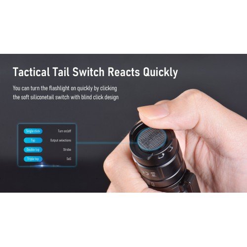 Компактен EDC фенер с тактическо излъчване - подсилен корпус, фрезовани чело, две пружини, тактически бутон.