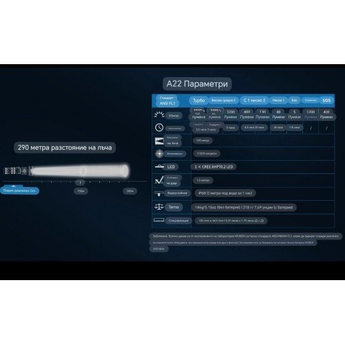 A22 4500 лумена високомощен акумулаторен фенер WUBEN