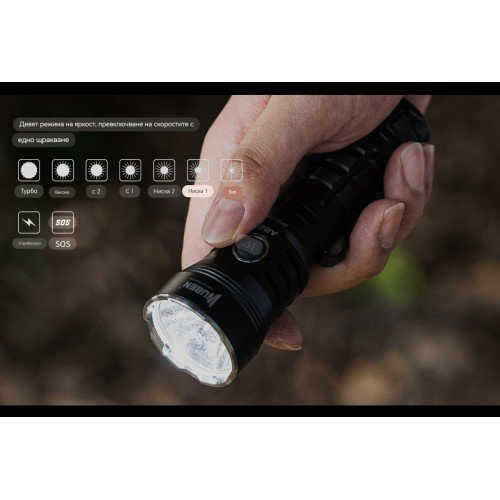режими на много осветяване, заключване на превключвателя, функция Firefly: 7 режима на яркост, за да отговори на вашите нужди от осветление в множество сцени. Снабден с функция за заключване на превключвателя за предотвратяване на случайно запалване. Оборудван с флуоритна светлина, която ви позволява да видите къде се намира устройството на тъмно.