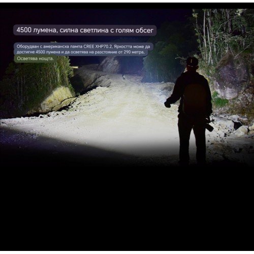 Максимална яркост от 4500 лумена: Оборудван с 1 CREE XHP 70.2 LED