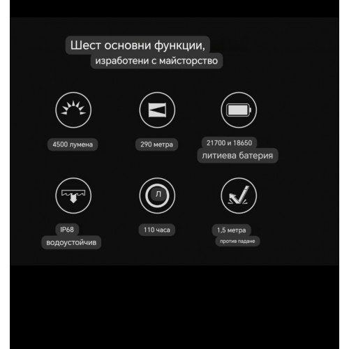 Бързо зареждане: 1 x 21700 литиево-йонна акумулаторна батерия или 1 x 18650 литиево-йонна акумулаторна батерия. Тип-C акумулатор (5V/2A)